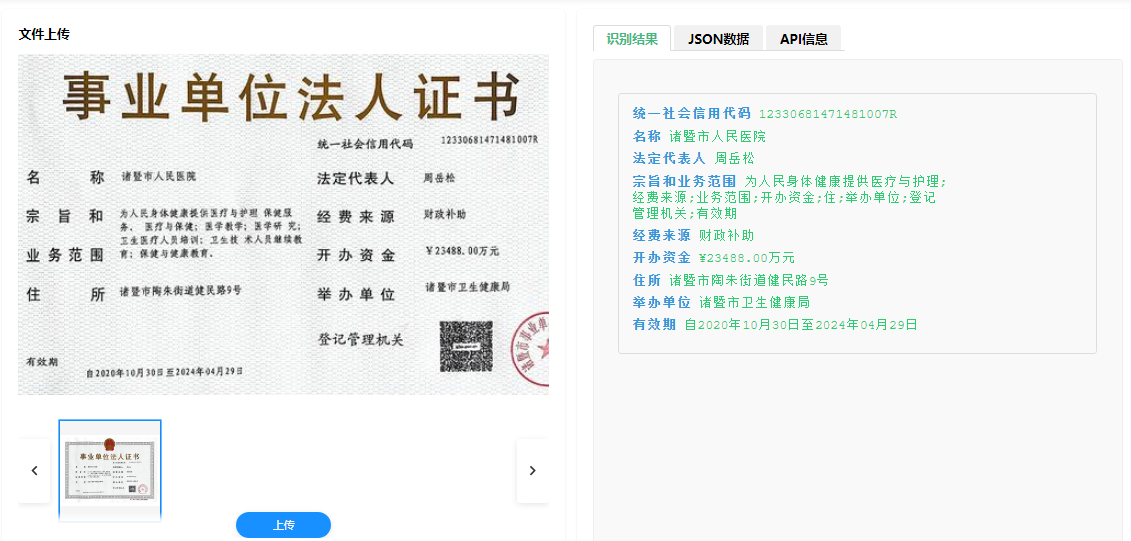 2.强大的自适应能力:能够兼容不同年代、不同地区印制的事业单位法人证书版本差异,自动适应版式变化,降低了对模板的依赖性。