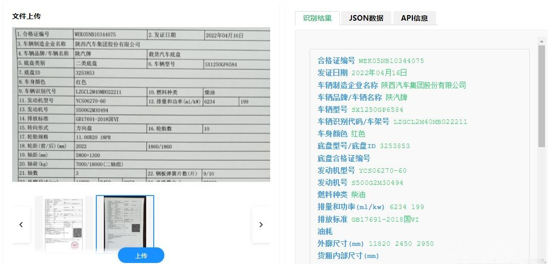 例如,系统知道“车辆识别代号”后面的那一串由字母和数字组成的17位代码就是VIN码,并将其准确地归类到“VIN”字段中。最终,所有被识别的信息都会被结构化地输出为JSON、XML或直接写入数据库,方便后续系统调用。