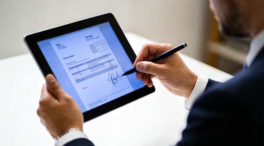 企业电子签章审批:高管在平板上签署合同时,系统同步完成身份核验,确保审批行为不可抵赖。
